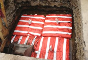 | 地下構造物の 建設 | 宅地造成などで盛土を行った際に、土が十分に締め固められていないと、時間とともに土が圧縮され、沈下が発生します。 |